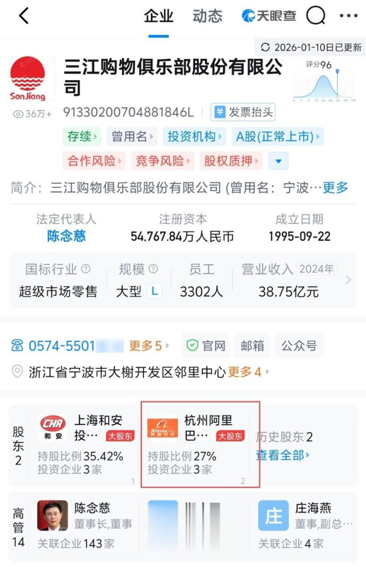 总的来说,从2025年4月拉开减持序幕,到2026年2月正式收官,阿里在短短不到一年的时间里,通过两轮大规模套现,从三江购物累计回笼资金约3.64亿元,持股比例也从32%降至27%。