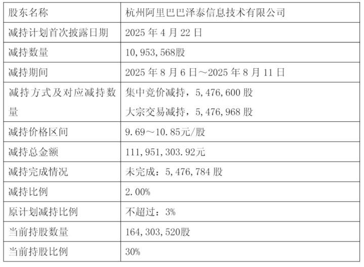 除了4月的拟减持计划,2025年8月,阿里泽泰也曾实施过一轮减持。